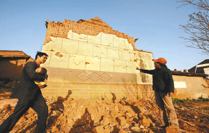 | →这是2月25日拍摄的禄丰县高峰乡起家村在地震中受损的房屋。