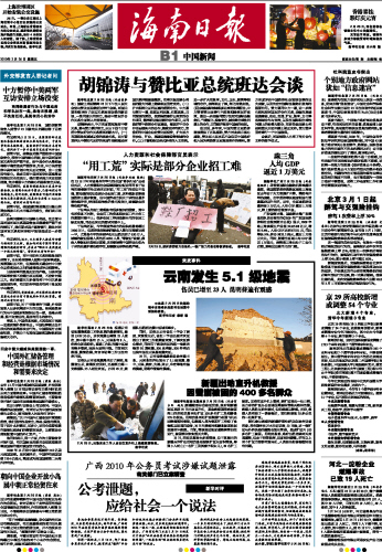| 海南日报 中国新闻 009 2010-02-261 2010年02月26日 星期五 |