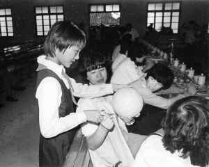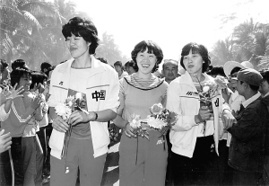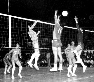 | 1985年初,中国女排姑娘与文昌男排在海口比赛。 |
