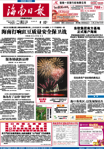 | 海南日报 头版 001 2010-03-011 2010年03月01日 星期一 |