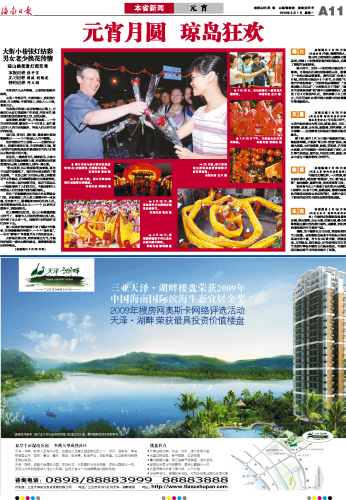 | 海南日报 本省新闻元 宵 011 2010-03-011 2010年03月01日 星期一 |
