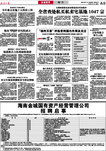 | 海南日报 本省新闻综 合 005 2010-03-011 2010年03月01日 星期一 |