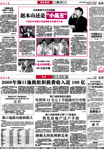 | 海南日报 娱乐新闻综 合 009 2010-03-011 2010年03月01日 星期一 |