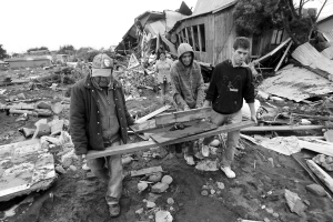 | 2月28日,在智利地震重灾区佩尤韦,当地居民从被地震毁坏的房屋里往外搬运有用的物品。