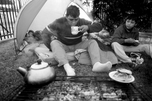 | 2月28日,在智利首都圣地亚哥,当地居民因担心余震而在一个公园里栖身。 新华社/路透 |