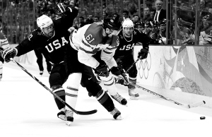 据新华社温哥华2月28日电(记者王镜宇 马丹)“金童”克洛斯比28日下午在加时赛中攻入的“金球”帮助加拿大队3:2险胜老对手美国队,第八次夺得冬奥会男子冰球金牌。 这也是自1980年普莱西德湖冬奥会以来东道主队首次将男子冰球金牌收入囊中。凭借这场胜利,“冰球之国”加拿大包揽了温哥华冬奥会男、女冰球两块金牌。 ←加拿大队员纳什(左二)遭到美国队员马龙(左一)阻截。 新华社发