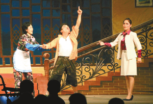 与主会场不同的是,在教育路与元亨街交叉口亮妆美容中心前,由琼海市琼剧团献演的现代琼剧《沸腾的万泉河》,则吸引了许多中老年观众,其中也不乏年轻琼剧迷。这部将现实生活中的事搬上舞台的戏剧,让琼海市民感到亲切万分,当那熟悉的生活片段和音乐唱腔在舞台上重现时,尤其是当穿插在戏中的《万泉河水清又清》的旋律响起时,现场观众掌声格外热烈。