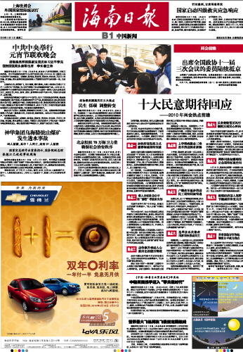海南日报 中国新闻 009 2010-03-021 2010年03月02日 星期二