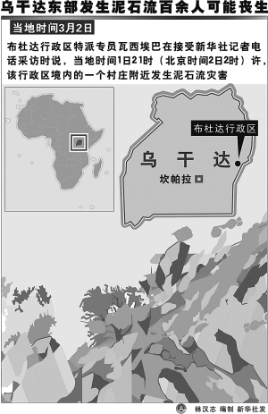 新华社坎帕拉3月2日电(记者田野 陈静)乌干达红十字会2日说,乌干达东部布杜达行政区当地时间1日晚发生的大规模泥石流已造成至少50人死亡,约300人失踪。