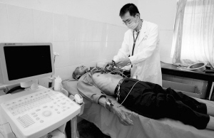 | 近日,在海口市美兰区新市卫生院,王德清医生在给村民进行心电图检查。 本报记者 张杰 摄 |