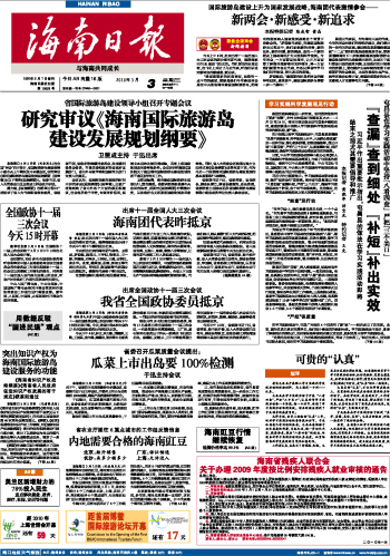 海南日报 头版 001 2010-03-031 2010年03月03日 星期三