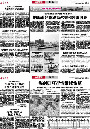 海南日报 本省新闻时 政 003 2010-03-031 2010年03月03日 星期三
