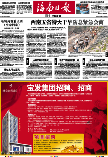 海南日报 中国新闻 009 2010-03-031 2010年03月03日 星期三