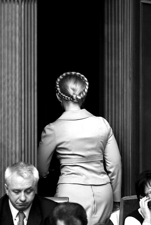 ← 季莫申科从议会离开。