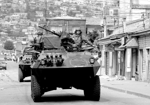 ↑ 根据智利政府公布的最新数字,27日凌晨袭击智利中南部的8.8级地震已造成795人死亡,约200万人受灾。 图为3月2日,在智利康塞普西翁市以南60公里的洛塔港,军方车辆在维持秩序。