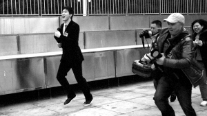 ←出席全国政协十一届三次会议的政协委员刘翔只要一出现,就成为各路记者追逐的热门对象。3月3日,全国政协十一届三次会议开幕大会结束后,刘翔为了躲避记者,差不多最后一个走出北京人民大会堂,但还是被守候在大门外的记者围追。刘翔飞跑突围,形成了记者与刘翔赛跑的有趣画面。
