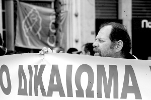 抗议经济紧缩政策 希腊左翼工会围堵财政部 3月4日,数百名希腊左翼组织工会会员围堵了希腊财政部大楼出入口,并号召市民参加当天晚上6点该组织举行的示威游行活动,反对希腊政府3日公布的更加严厉的经济紧缩政策。 新华社发(马里奥斯·罗洛斯摄)