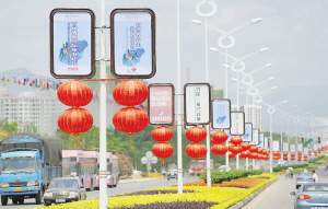 3月4日,随着首届博鳌国际旅游论坛的临近,美丽的鹿城三亚处处可以见到庆祝论坛即将召开的广告牌和亲切的宣传标语。 本报记者 王凯 摄