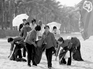 3月4日下午,海南民生百货团委开展“践行雷锋精神 共建国际旅游岛”活动,特别组织20多名青年志愿者组成学雷锋小组,来到海口假日海滩清理垃圾,美化环境,以实际行动践行雷锋精神,为建设海南国际旅游岛出一份力。 本报记者 张杰 摄