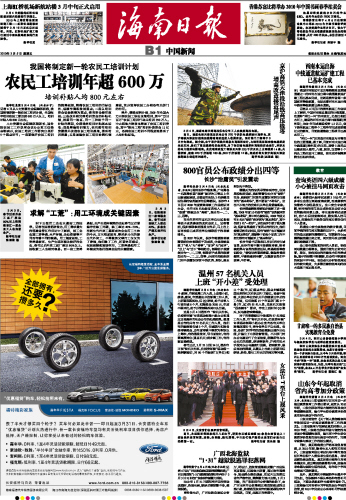 海南日报 中国新闻 009 2010-03-051 2010年03月05日 星期五
