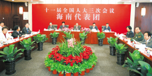 | 3月5日下午,海南代表团在驻地北京远望楼宾馆审议政府工作报告。