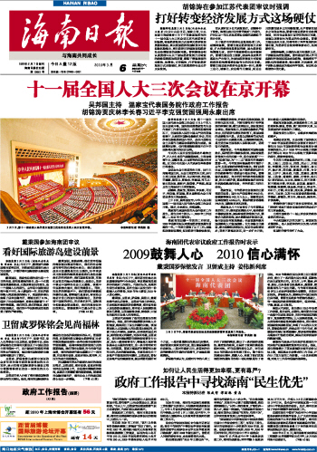 海南日报 头版 001 2010-03-061 2010年03月06日 星期六