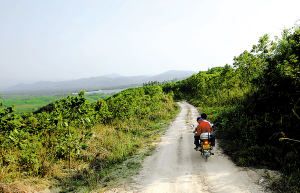 | 三月五日,赛事组织人员在屯昌县木色湖景区考察二0一0年全国山地自行车冠军赛的赛道。 本报记者宋国强 摄 |