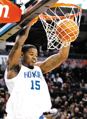 | 3月6日,在NBA常规赛中,猛龙队主场以102:96战胜尼克斯队。图为猛龙队约翰逊在比赛中扣篮。 新华社发 |
