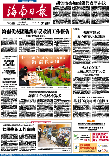 海南日报 首版 001 2010-03-071 2010年03月07日 星期日