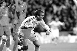 3月7日,在西甲联赛第25轮比赛中,皇马队主场以3:2逆转战胜塞维利亚队。图为皇马球员范德法特(前)在补时阶段攻入致胜入球。 新华社发