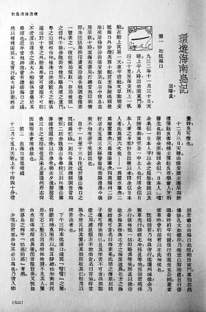 第三类游记是专题的游记,数量虽然不多,但内容丰富,影响巨大。这其中要以后来以书籍形式出版的田曙岚著《海南岛旅行记》最为有名。此游记最早以《环游海南岛记》为名,发表于《旅行杂志》第9卷1~3期。之后在1935年由中华书局出版。此书是田曙岚历时两个多月在海南岛内游历的记录,活动范围比较广泛,除了中部的黎族地区外,环游了海南岛整个沿海地区,田氏当时已经游历过国内许多地区,熟悉中国国内各地的风土人情,所以他的《海南岛旅行记》记载全面,材料翔实,内容有趣,记述了海南特有的风俗。如他在海南岛各地旅行,途中口渴时,多饮咖啡解渴。其在潭口,路途口渴,“乃偕入咖啡馆,各尽一盅;计其值,不过铜元十四枚而已。回忆在北平、上海等处以吃咖啡为较有资产阶级之色彩,而在此间却极平常之至,语云:物以少为贵,信然”。此书堪称海南游记中的名著。同时,这部游记也是民国时期中国游记中的名篇。