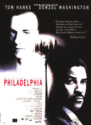 在华盛顿出演的“黑白双响”电影中最光芒四射的白人演员应该是另一位重量级人物汤姆·汉克斯。1993年,这对“黑白双煞”搭档出演了著名的《费城故事》,本片尖锐深刻地反映了艾滋病患者和他们遭受的歧视以及随着产生的诸多社会问题,改变了很多人对艾滋病患者的看法,甚至推动了美国社会防治艾滋病的进程。在本片中,风华正茂的两位影帝联袂演绎了一段感人肺腑的故事,丹泽尔张扬之中略带一丝狡黠,法庭上的一段辩论,把一个机智的律师形象刻画得深入人心。而汤姆·汉克斯则更是技惊四座引人注目,他为这个角色做出了身体上的巨大牺牲,把一个频临死亡的艾滋病患者诠释得惟妙惟肖———这个角色身上那种聪慧、敏感而又纤弱的特质被他传神地刻画出来,这次表演为他赢得了第一个奥斯卡影帝。一部电影能让人对某一社会问题形成关注,注定会成为经典。