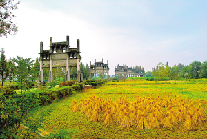 当走过七个牌坊后,站在出口的石凳上回望,走廊上耸立的七个牌坊和稻田中挺立的不计其数的草垛相映成趣。有点纳闷,以前有看过介绍牌坊群的相片,牌坊不是置身于一望无际的荷花中么?经村民解释才知道,为了保持牌坊群景致原汁原味的造型和多变的背景。当地政府决定在牌坊两边不再做开发,让村民在两旁冬种油菜夏植水稻,隔年间种以荷花。为自己庆幸,赶上了牌坊丰收的布景,又有些许遗憾,没有遇上油菜花金黄接天的时节和荷花映日嫣红的光景。
