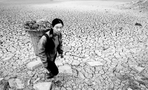 贵州省普安县郊外的一个池塘已经完全干涸,一位村民在池塘边割草(3月5日摄)。 贵州省气象台3月7日气象干旱综合指数监测结果显示,截至3月6日20时,贵州88个县(市、区)已有59个达到特重级气象干旱标准,全省82.14%区域达到重旱级气象干旱标准以上。 新华社记者刘续摄