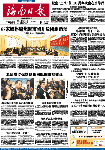 海南日报 头版 001 2010-03-081 2010年03月08日 星期一