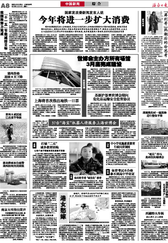 海南日报 中国新闻 综 合 008 2010-03-081 2010年03月08日 星期一