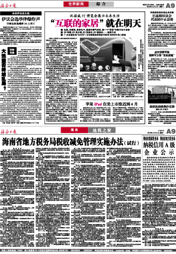 | 海南日报 世界新闻 综 合 009 2010-03-081 2010年03月08日 星期一 |