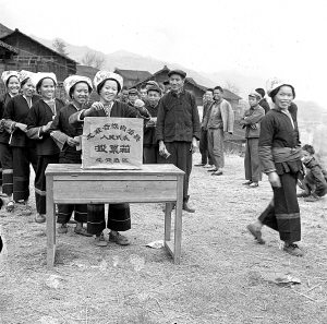 ← 1981年,安徽省嘉山县女山湖渔业公社的渔民在投票选举人民代表。