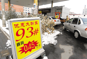 3月8日,位于北京石景山区的一家加油站前矗立着降价的招牌。近来北京地区包括中石化、中石油所属站点在内的不少加油站打出降价招牌,京城的“油价大战”有愈演愈烈之势。 新华社发