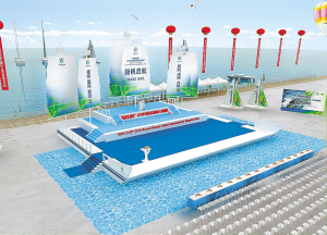| 3月9日,环海南岛国际大帆船赛的起航仪式(即开幕式)舞台开始搭建,这是开幕式创意方案效果图。起航仪式将于3月13日下午在美源海口湾举行,开幕式的创意主题为“扬中华文明之帆,启海南国际之航”。