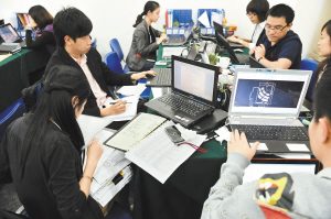 ↑3月9日,2010博鳌国际旅游论坛筹备工作委员会工作人员在加班工作,他们几乎天天工作至深夜。 本报记者 王凯 摄
