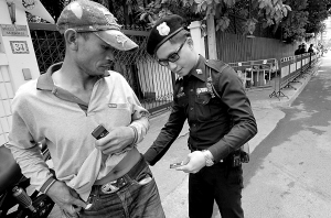 “红衫军”百万人集会在即 泰批准实施国内安全法 3月10日,安全人员在泰国总理阿披实位于首都曼谷的住所外对过往行人进行检查。面对泰国前总理他信的支持者计划于12日至14日在曼谷举行的百万人集会,泰国政府严阵以待。 泰国政府9日在每周例会上批准在曼谷全市及周边部分地区实施国内安全法,以应对前总理他信的支持者“红衫军”计划于3月中旬举行的大规模反政府集会活动。 总理阿披实警告说,“红衫军”所要求的解散议会并不是他们的真实目的,人们参加集会前应该三思。 新华社/法新