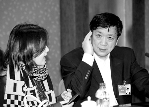 | ← 3月8日,全国政协委员陆启洲(右)在接受记者采访时,由于没听清楚问题,他把手放到耳朵边对记者说:“您说什么,请再说一遍”
