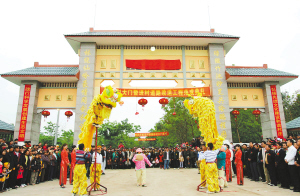 3月10日,定安县龙河镇绿林村新修建的6.5米宽进村道路和村大门正式投入使用。工程所需的44万元款项全部由村民自筹。图为该村大门暨进村道路改造工程落成典礼现场。 本报记者洪宝光 特约记者傅林/文 本报记者张杰/图