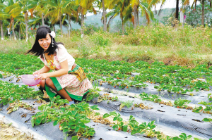 三亚田独镇亚龙湾安置区12亩草莓地每天接待游客数百人,客人们游完景区来到地里摘草莓,品尝鲜果,喜笑颜开。 本报记者 苏建强 摄