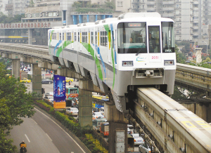 3月10日,“重庆造”首列轻轨车辆投入运营。当日上午9点,“重庆造”轻轨列车正式投入使用,这标志着重庆具备了生产组装轨道交通车辆的能力。 新华社记者 陈诚 摄