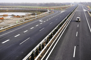 一辆汽车在随岳南高速公路上行驶(3月10日摄)。 随岳高速公路湖北省南段全长98.06公里,2004年11月动建,2010年3月10日正式建成通车,概算总投资53亿元。 新华社记者郝同前摄