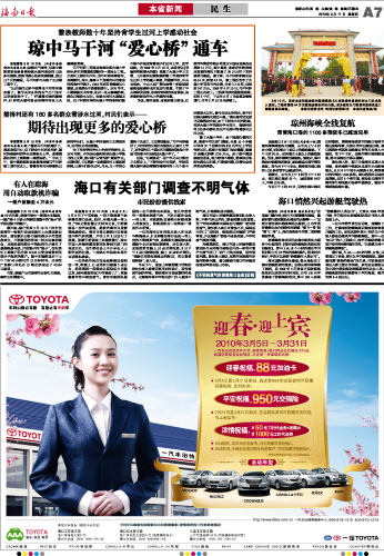 海南日报 本省新闻 007 2010-03-111 2010年03月11日 星期四