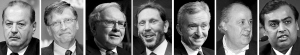 这张拼版资料照片显示了进入富豪榜的部分富豪(从左至右):墨西哥电话公司首席执行官卡洛斯·斯利姆·埃卢、微软公司创始人比尔·盖茨、“股神”巴菲特、甲骨文公司创始人劳伦斯·埃里森、法国LVMH集团董事长兼首席执行官伯纳德·阿尔诺、西班牙Inditex集团主席阿曼西奥·奥特加和印度信实工业公司董事长穆凯什·安巴尼。 新华社/法新