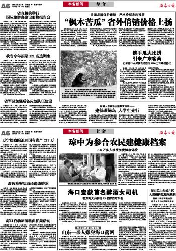 海南日报 本省新闻 006 2010-03-121 2010年03月12日 星期五